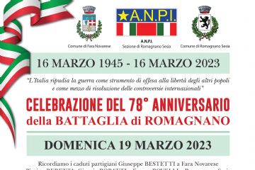 Il giorno 19 marzo 2023 si terrà una commemorazione del 78° Anniversario della Battaglia di Romagnano Sesia, in cui verrà ricordato il partigiano Giuseppe Bestetti. Programma nel volantino...