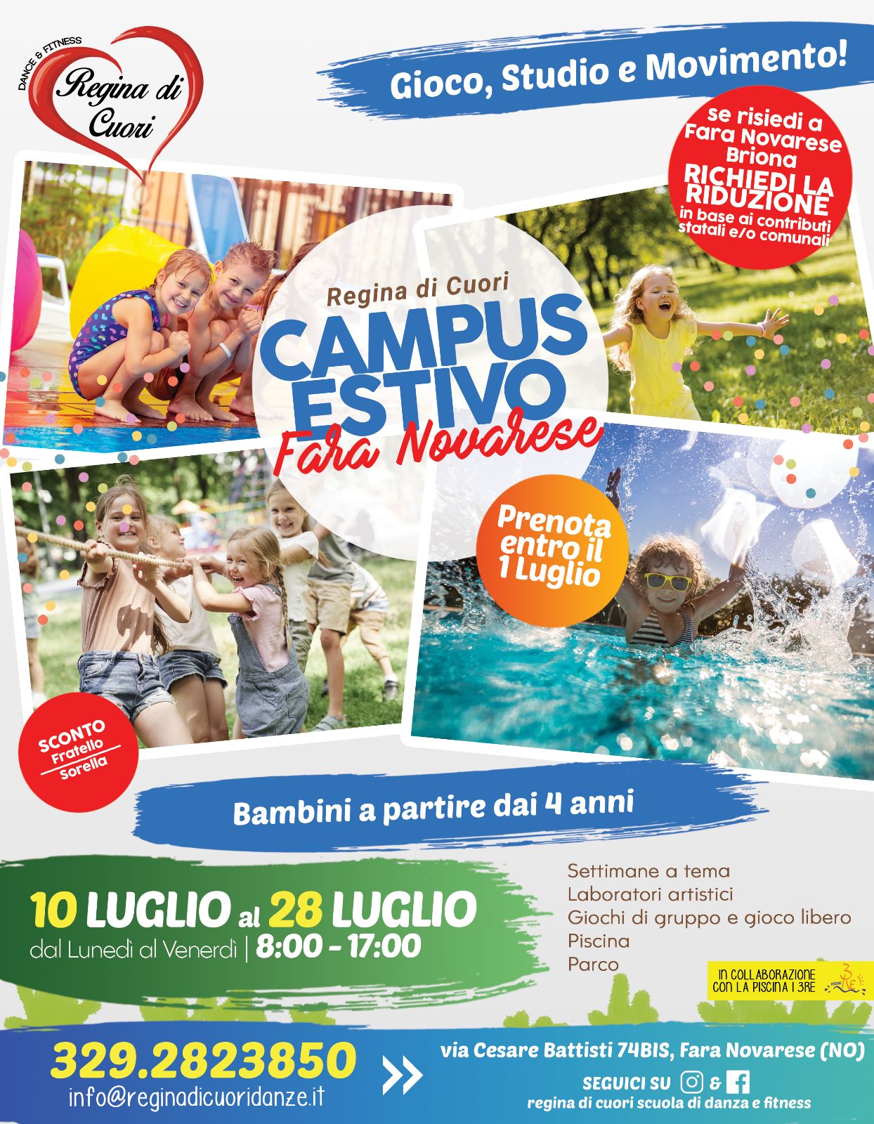 Quest'estate sul territorio di Fara N. si svolgeranno due centri estivi a cura di Regina di Cuori e Piccolo Mondo, per bambini a partire dai 4 anni. Negli allegati informazioni e dettagli.